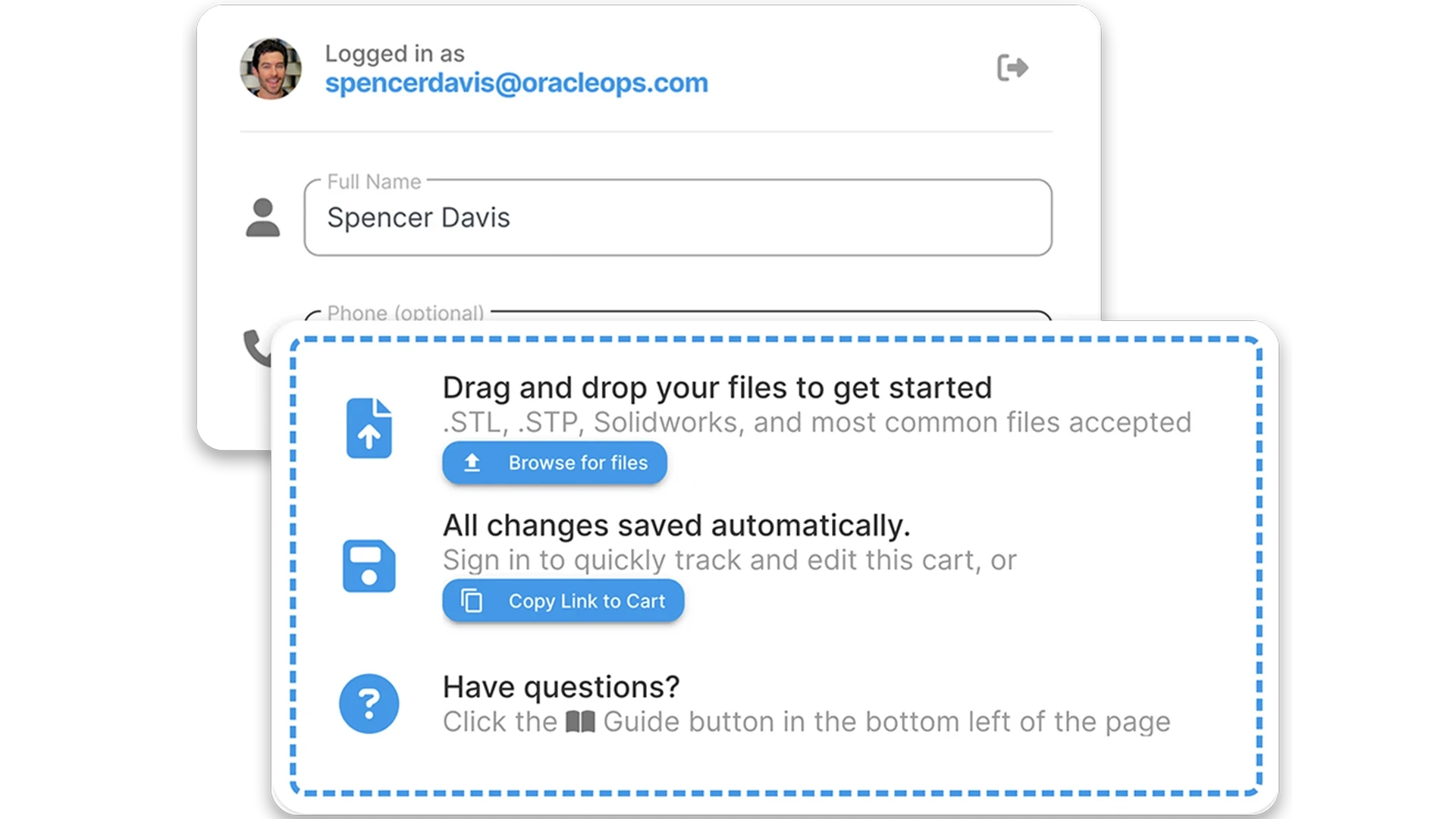 Advanced model analysis allows for calculations based on technology, settings, material choice, and quantity. All common CAD formats supported.