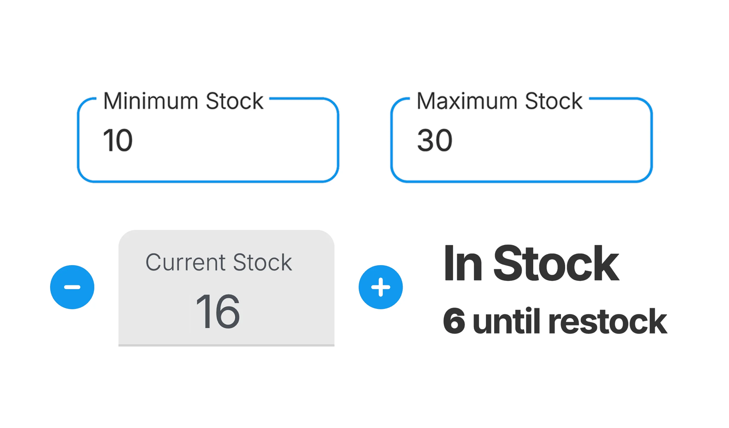 Choose your min and max thresholds to have stock levels update as you approach reorder points.